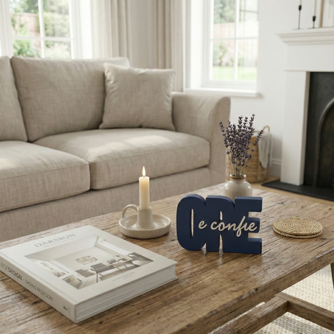 Com um design inteligente que mescla a robustez da base com a delicadeza da escrita cursiva, esta peça se sustenta sozinha (stand-alone), dispensando apoios extras. Produzida em material de última geração, ela oferece uma textura moderna e uma resistência muito superior ao gesso ou cerâmica.