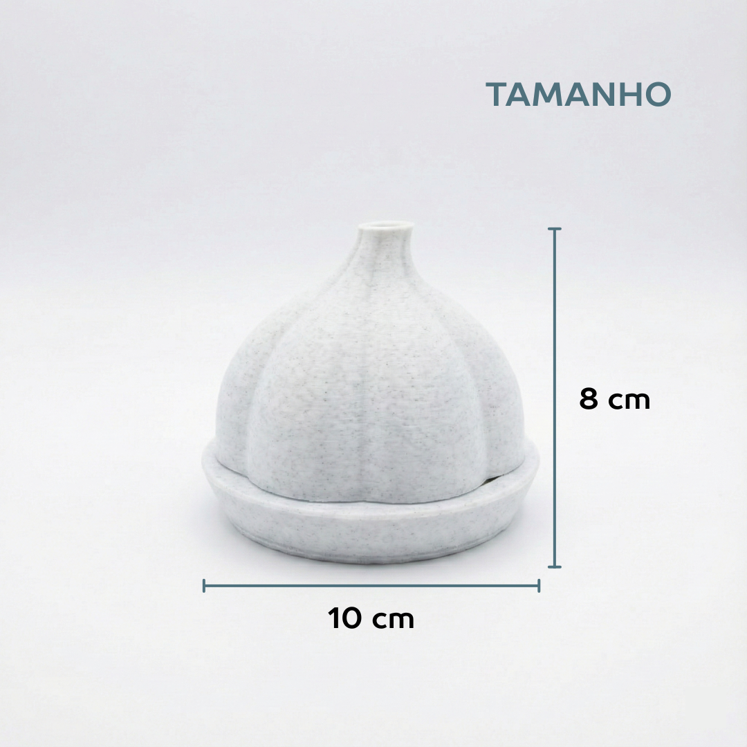 Sua grande vantagem sobre os potes de cerâmica ou louça é a tecnologia do material: apesar da aparência nobre e texturizada, ele é altamente resistente a impactos. Se escorregar da mão molhada, não quebra. Possui fechamento em rosca que mantém os dentes de alho protegidos, organizados e sempre à mão para o seu refogado. Beleza, higiene e durabilidade em uma única peça.