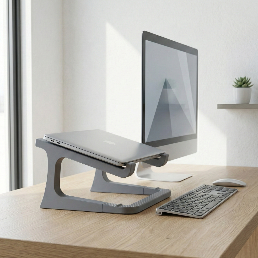 Transforme seu setup em uma estação de trabalho profissional. Se você passa horas em frente ao computador, sabe que a postura errada cobra um preço alto. Este suporte foi projetado milimetricamente para elevar a tela do seu notebook, alinhando-a à altura dos olhos e prevenindo as temidas dores na cervical e nas costas.